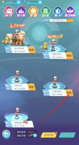 5、选择一个想要挑战的对手,并且点击“挑战”