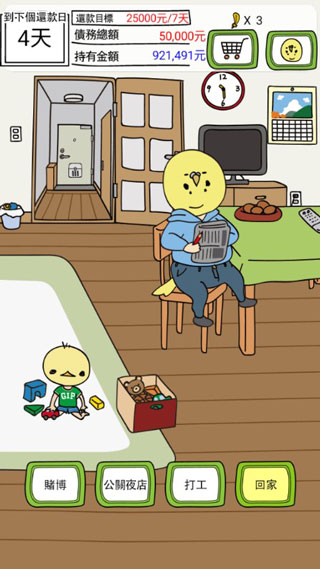 - 无论如何也不想工作的男人,玩玩闹闹就把欠债还清的游戏。