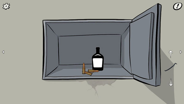 拿到保险柜的钥匙后就回到卧室。输入密码,同时把钥匙插进左边的孔。打开后获得子弹和酒。
