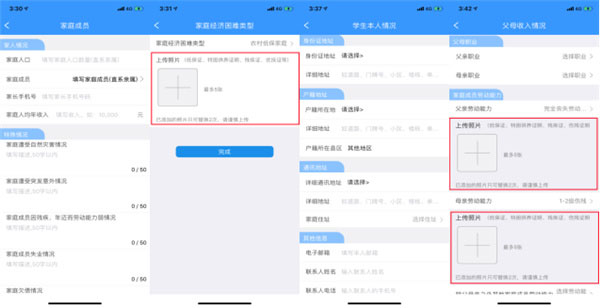 申请流程也很简单,学生只需要在APP里填报信息,上传相关证明材料,提交后学校后台就能收到申请。对于家庭经济情况的选择,如果选“其他”就不用额外上传照片了,挺方便的。评定结果也可以在线查看,操作起来没有问题。