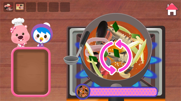 波鲁鲁料理是一款美食制作模拟经营游戏,英文名叫Pororo Cooking Game,采用精美的界面设计、逼真的音效,卡通的画面以及真实的制作流程,给玩家带来了非常逼真的下厨体验。