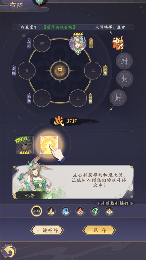 3、点击新获得的神魔比翼,让她加入到我们的战队阵容中。