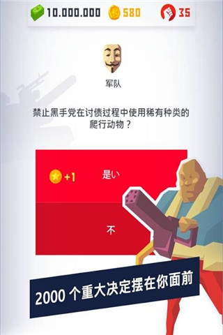 2、前期尽量选人民和反对派,军队 黑手党 寡头次之 警察少选,警察管的最多,后期可以选警察降其他的帮派十字架。