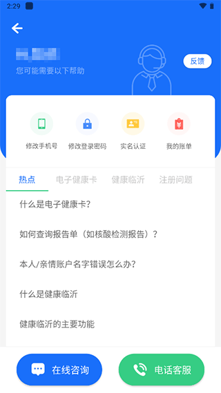 进入电子健康卡-点击头像进入个人中心-帮助中心-电子健康卡问题答疑