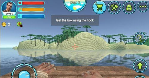 游戏中我们可以看到,海面上会随机漂浮着很多木箱,这些木箱里面都有各自资源材料,我们要想办法将这些木箱捞起来作为前期生存的资源。