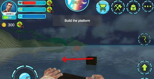 进入游戏后,我们将出现在一块漂浮的木板上,整个木板大概有100平米左右,在不远的低分有一座小岛,那就是我们很多生存资源的小岛了。