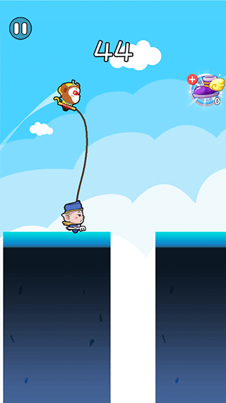 4、游戏中有两个角色,大家点击屏幕即可操控角色,如果一个角色掉下去也没关系,只有两个都掉下去才算游戏结束。