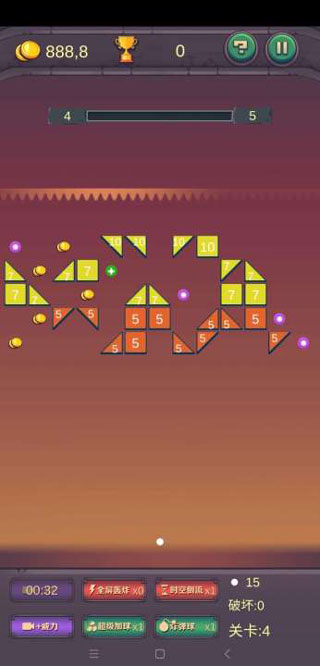 我最喜欢的是它的闯关模式,每次成功阻止砖块到底端的那种成就感特别强。虽然操作看起来简单,但想要精准控制弹球方向还是需要一点技巧的。尤其是看到自己的小球 ricochet(反弹)一圈圈击碎更多砖块的时候,真的有种掌控全局的快感。