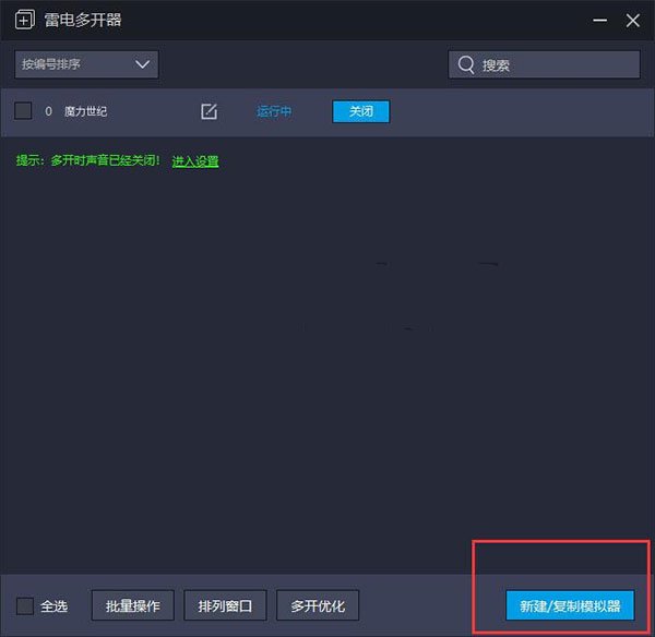 双击打开雷电多开器,点击“新建/复制模拟器”按钮;