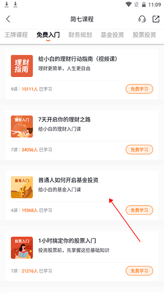 3、在这里,用户可以找到各种免费课程,免费学习各种理财知识;