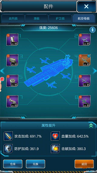1、配件跟着等级走,就是你的主力战舰配件要跟上等级。
