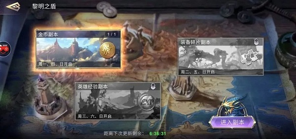 当领主大人您通关了远征3-1后,即可以从大陆界面进入黎明之盾,选择对应的塔防副本进行挑战,获得大量的金币、装备或英雄经验奖励。黎明之盾每隔一段时间就会刷新挑战次数,领主请争取时间多打几次领取大量奖励哦!