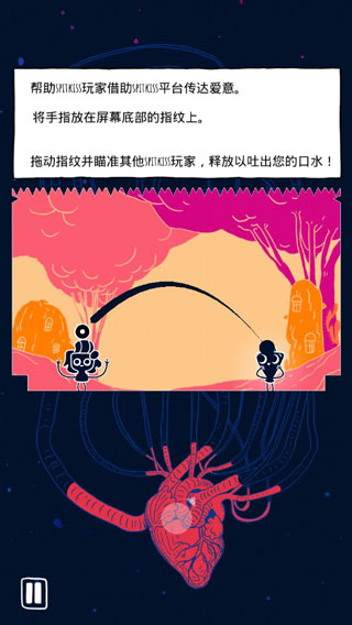 相濡以沫(Spitkiss)是一款十分休闲虐狗的治愈系单机小游戏,该游戏整体画面清新,主要以讲述的是主角“Ymer”为收获爱情传递爱意的故事,游戏中你将协助主角收获满满的爱情,利用跳跃、流淌、弹跳、子弹等方式来抵达各个相对的器官完成任务即可。虽然相濡以沫在题材上并没有给人十分出众的感觉,但其创新的滑动跳跃机制,多元化恋爱主题,以及类似于“愤怒的小鸟”的弹射玩法的加入还是让游戏具有乐趣和可玩性。