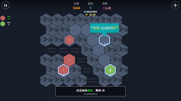 在成长阶段,可以使用储备的点数来增加地块强度,以此加固防御并为下回合扩张做好准备。