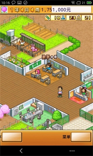 名门口袋学院2是一款Kairosoft旗下的模拟经营游戏。你想得到一间学校吗?希望在你的学校改变一些东西吗?那现在就给你一个这样的机会,打造一个你的终极梦想的学院!游戏中玩家需要管理一所刚起步的学院,不断搭建各种学校设施引入更多的学生,培养学生各种能力值,不同设施搭配可以出不同的效果,由你独自创造的口袋学院,作为一款模拟经营游戏,口袋学院绝对算得上是精品。