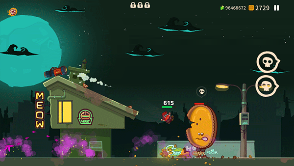 Cups群,稍不留神就会被逃亡的cups的“饮料”击中,那感觉真的是一痛啊, 面对这样的运动速度快,但是不方便近距离攻击的”曲奇"来说,最好的办法就是找掩体,打嗝枪锁定目标-攻击!在曲奇必死中学会利用死角和找掩体是非常重要的。