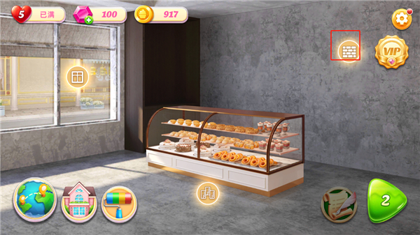 7、通过小游戏关卡后,玩家将会获得金币奖励,之后,你可以重新装饰蛋糕房的墙纸、地板、窗户、吊灯等等;