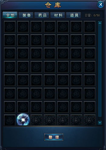 点击背包界面中的【仓库】按钮,可以进入上图所示的随身仓库。随身仓库等于是背包的额外扩展,但不能直接使用仓库里的道具。