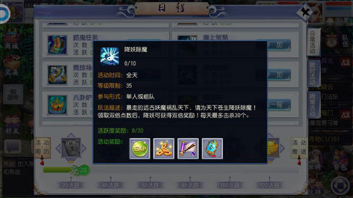 1、建议玩家领取双倍点数后,因为降妖可以获得双倍奖励,每天最多可以击杀30个。