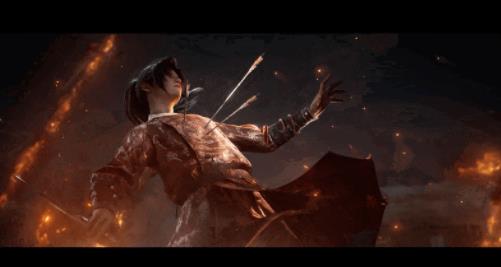 随着男主手中剑的掉落,镜头飞速切换到烽火连绵的战场之中。数只飞矢急射而来,正中男主胸口。