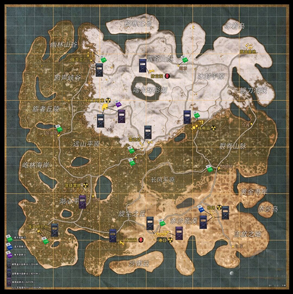 紫色辐射门在匪徒营地,生化实验室,港口有分布,其中生化实验室内每3小时刷新一只EG-突变体,血量伤害极高,需要谨慎。开启辐射门时要注意通电开关,避免刷空卡的情况发生。在机场,港口集装箱上会刷新军火箱,及补给箱。