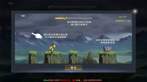 玩家将控制一名地精,通过蓄力跳跃平台前行的项目,各个平台之间的距离,以及面积大小不一,实际是有一定的挑战性的。在跳跃的过程中,地精还有可能收获各种奖励,是一场充满着惊喜的小冒险。