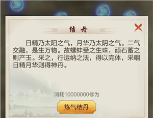 2、①结丹:消耗1千万修为,花2个小时,转化成50属性,属性是随机的。