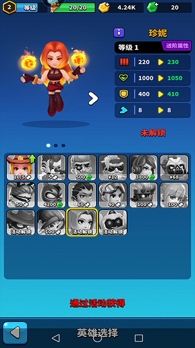 多达近二十个英雄角色,玩家进入英雄模式中便可逐步启用,让自己的技能飞升;
