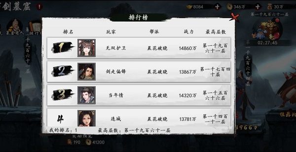选择挑战的对手后,大侠就可以进行排兵布阵进行对决了。随后会进行对战比拼判断胜负,并获取名望奖励。首次挑战获得最高名次可以获得一次性元宝奖励,冲击排名是不是更有动力了呢?根据排名情况,会在每日23:30进行结算,并按照排行榜发放对应奖励。第一名获得6000声望、第二名获得5500声望、第三名获得5000声望、第四名获得4800声望。5-10名获得4500声望、11-20名获得4000声望、21-39名获得3925声望,此后获得的声望随名次递减。如果大侠是前50名的高手,还能荣登排行榜宝座,供诸位侠客所敬仰。
