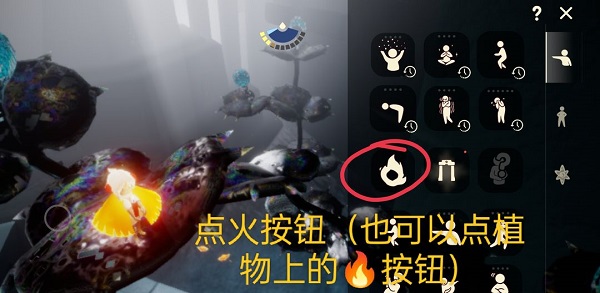 (八)烧大花(大株黑暗植物)的时候,你在好友把你丢下的位置举火(点火:手捧燃烧的蜡烛)即可,大叫两三次为他回能,不要有其他操作。也不要牵手好友。