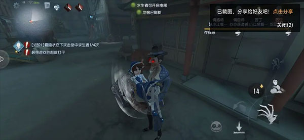 同样老规矩开局去出生点击倒求生者,遇到救人位可以尝试挥一刀雾刃,打中了可以试试追一下,打不中就走吧。不过打中后追了一会儿发现抓不到那就要果断放弃,别上头。挂人后利用隐身的机动性干扰一下破译,或者提前拦截,守尸基本就是一雾刃一平A必要之时可以拦截时平A接传送。