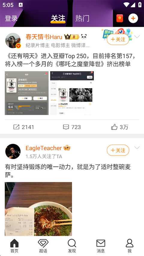 明星、大V的新动态,加关注便可看到喜爱博主动态