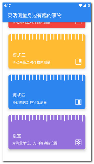 你是不是也有过这样的经历:出门在外突然需要测量东西大小,却发现自己忘记带尺子?现在有了这款手机电子直尺app,这些问题都能轻松解决!它直接把你的手机变成了一个精准的1:1比例尺子,操作特别简单,只需要把手机边靠在物品边上就能读出数据。而且它还有多种测量模式,比如点测、线测、对边测和四边测,满足各种不同的需求。