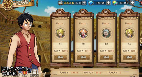 多人同时竞技,通过角色搭配、资源运营等手段构建不同的打法流派,使用《航海王》动画原作中的角色进行对战,形成八人割据的战斗局势,最终角逐出胜利者。