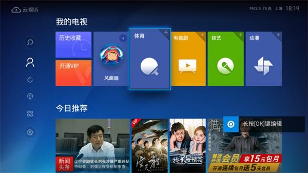 2、长按OK键,出现替换模块,共有9个内容板块随心切换(电视剧、电影、体育、Live、综艺、资讯短片、纪实、动漫、少儿);