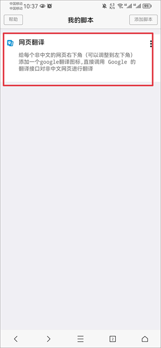 1、我们以网页翻译这个脚本为例,打开脚本详情页,直接点击””安装此脚本””按钮。