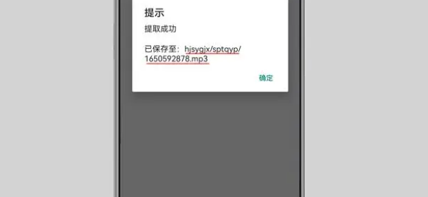 7、App会根据视频文件的大小提取视频中的音频内容,并在操作结束后弹出“提取成功”窗口,这里我们需要记下MP3文件的保存路径。