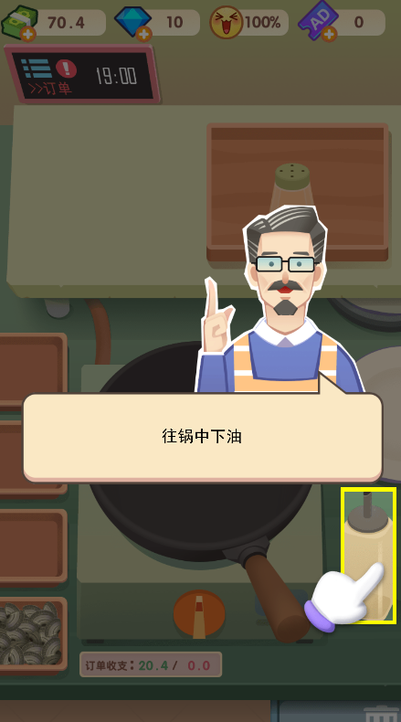 1、进入老爹热炒店最新版游戏后,你会接待各种类型的客人,首先需要了解客人的订单。