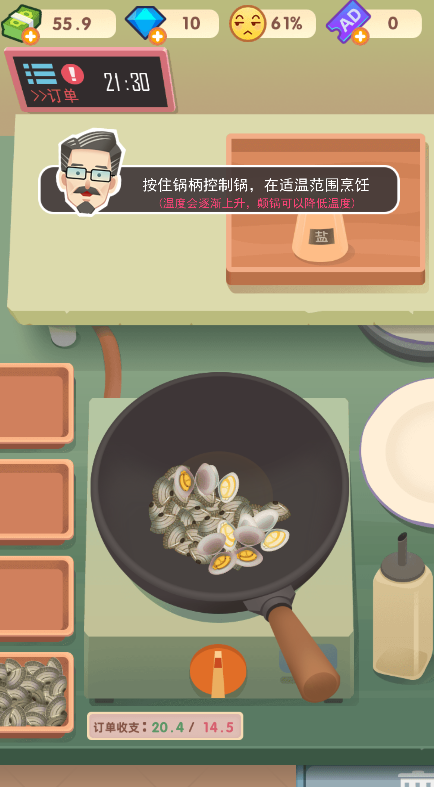 1、非常简单的点击操作方式,轻松烹饪美食,赚取大量奖励。