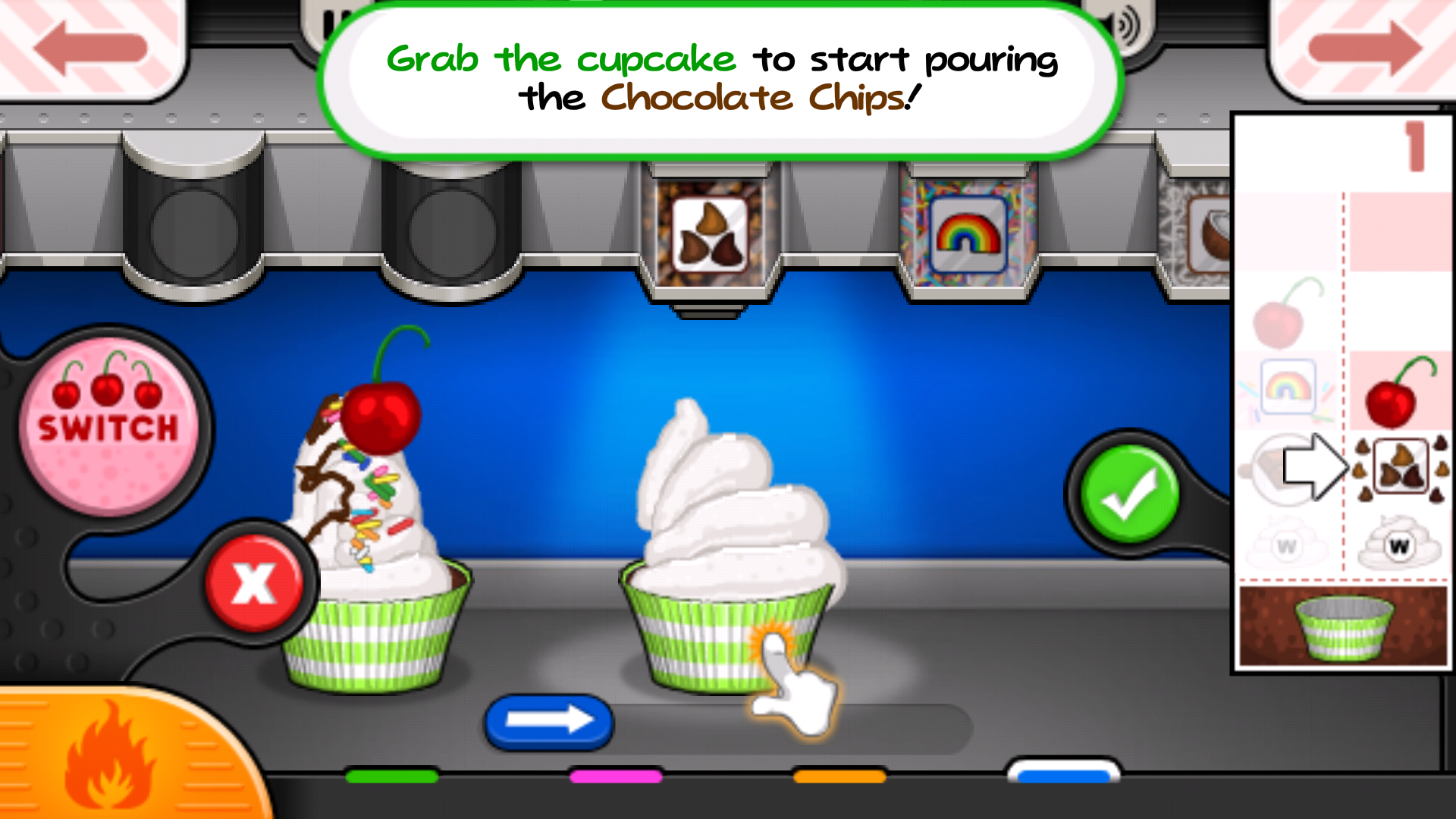 每个站点都是亲身体验,您需要在其中拖动、滑动和轻敲纸杯蛋糕制作过程。