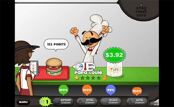 2、你要快速地学习如何烹制顾客点的汉堡,从简单的单层汉堡开始,不断地学习并推出各种各样的新品。