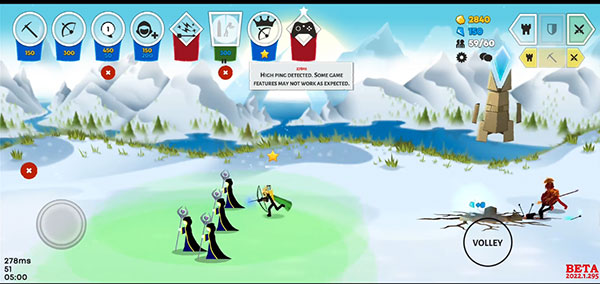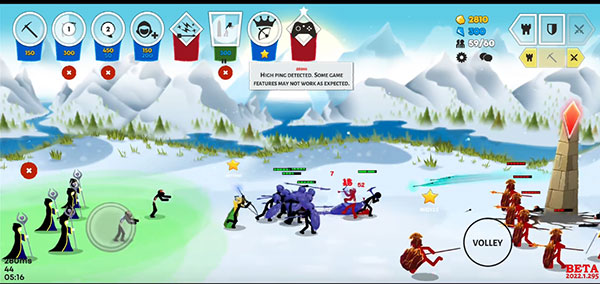 第九关:巨人关卡,先养两名剑士,操控其中一名跟巨人绕走位,另外一名备用,经济上来后全养弓箭手