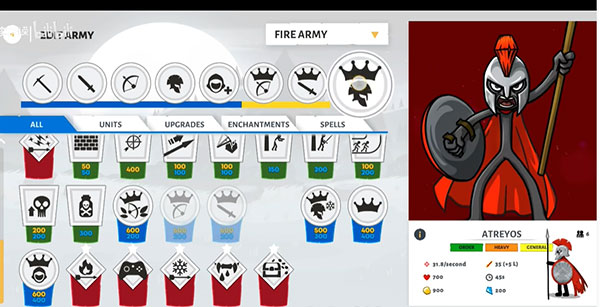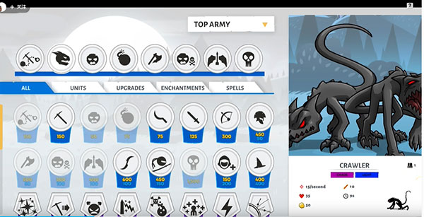 第十二关:最终对战,这时敌方用的是熔岩皮肤,十分强悍,前期两排剑士一排弓箭手,7个矿工发展经济(备上淘金热*3)后期养两巨人开路,两排弓箭手掩护,四排剑士拆雕像(备好剑士狂怒*2,一个拆雕像,一个防援兵),敌方雕像没血后会变出一个巨人(银甲大帝),这时赶紧撤退(防守模式),不要跟他硬刚,因为他伤害非常高。这时拿出对付巨人的套路,不过千万不要皮。打败他之后就会按照剧情发展,跟着剧情走就好了。