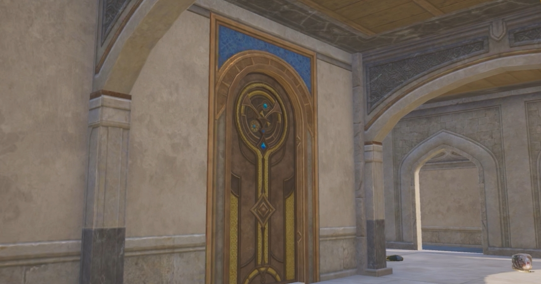 庭院分为内院与外院,外院摆放最强队伍雕像;内院则由二楼的建筑与地下沙漏空间组成。