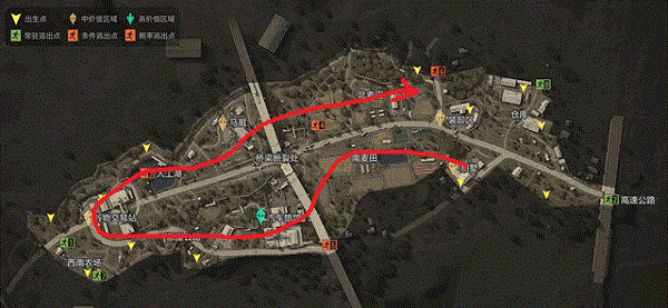 说完了资源点,我们可以来聊聊路线规划的问题。农场地图中,除了汽车旅馆外,其它单一资源点的物资都不足以装满你的背包。所以我建议大家在做路线规划时,最好在途中造访至少两个关键资源点,比如北线的"马厩、装卸区、仓库"或者南线的"别墅、麦田小屋、墓地、谷物交易站",这种靠一边行进的路线安全系数相对较高。