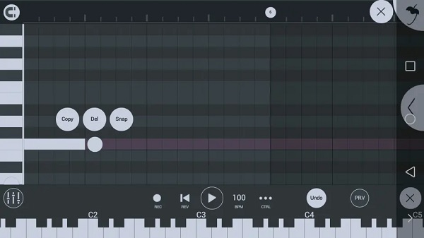 拖动右端小圆形可以改变音符长度(改变时值)。del选项可以删除该音符。点击“×”可以退出当前页面。