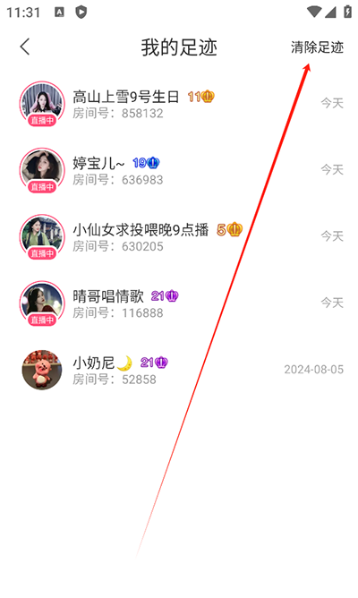 3、点击清楚足迹即可