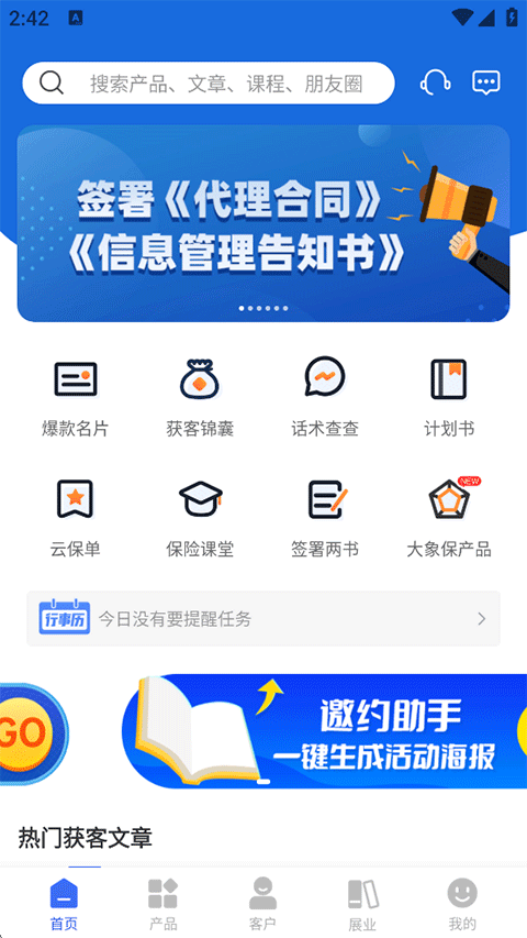 营销文章精准获客,微信朋友圈海报助手增强互动,多款险种配套营销素材助力推广获客,个人品牌轻松打造,线上展业不再难!