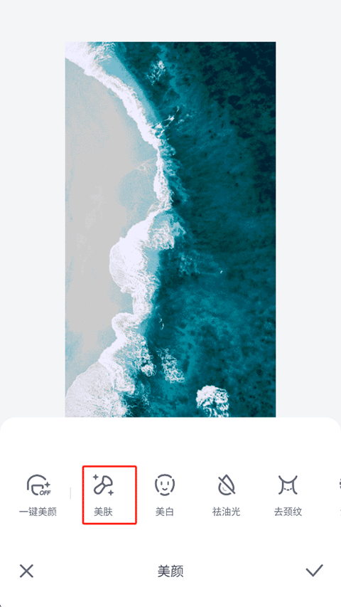 3、选择美肤选项,进入磨皮调整界面。