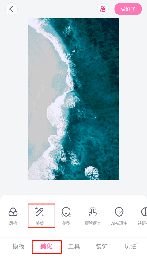 2、点击底部菜单中的美颜功能(部分版本可能显示为“美化”或类似名称)。